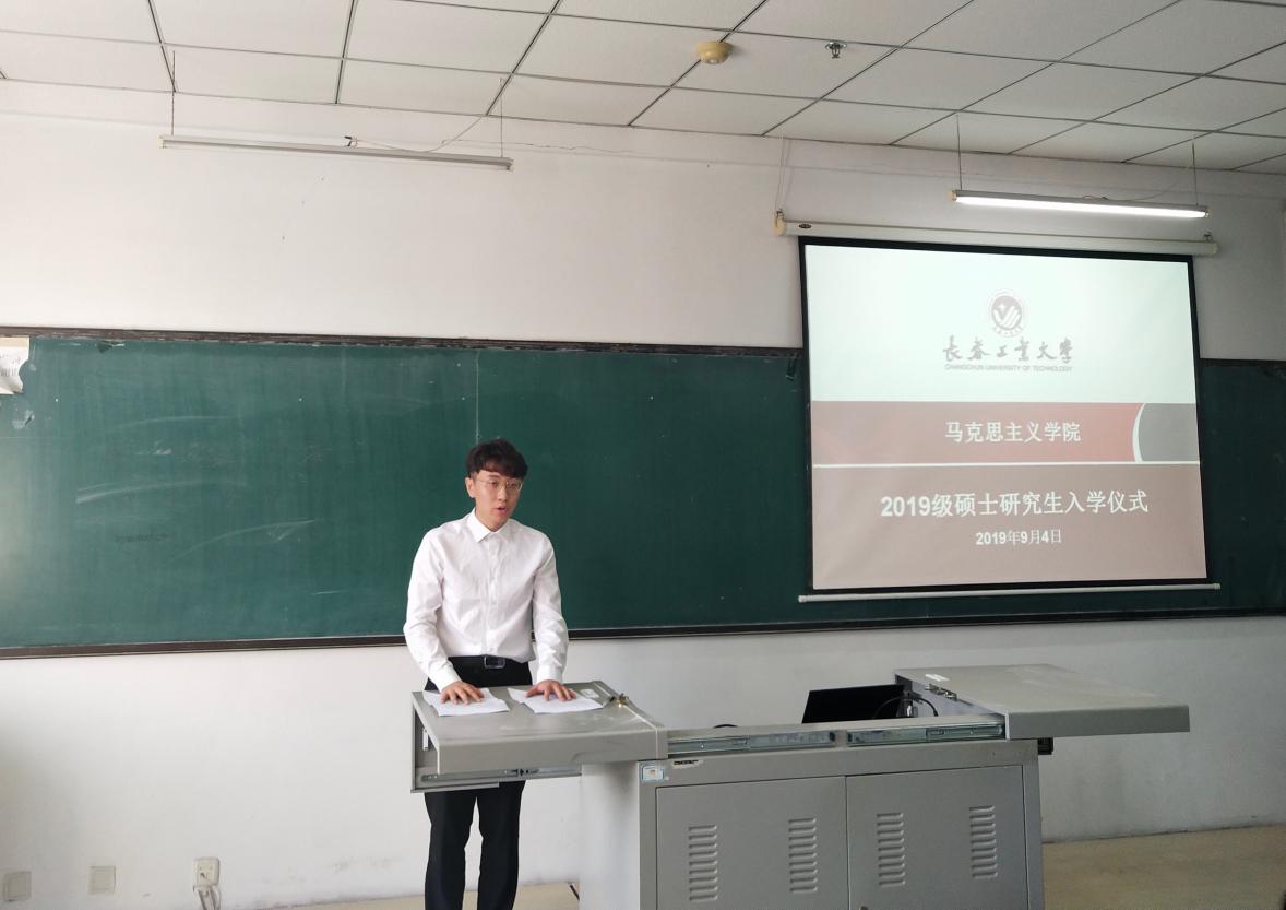 李昊同学作为新生代表发言,表达了加入工大388vip太阳集团的自豪,表示会尽快适应新的环境,进入研究生学习状态,不忘初心,牢记使命,砥砺前行,不负马院,不负工大,不负青春!
