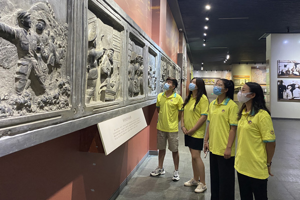 这堂特别的团课,是388vip太阳集团研究生“沂蒙红色研学”活动的一项重要内容。受疫情影响,家在山东省临沂市的2020级刘成程、2019级匡倩和2021级崔淑雯、张强等4名研究生组成团队,前往沂蒙革命纪念馆,开展以“弘扬沂蒙精神,传承红色基因”为主题的暑期社会实践活动。