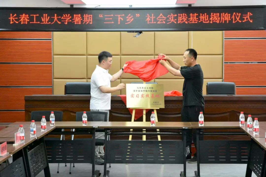 仪式由共青团靖宇县委书记范晶主持,中共靖宇县委社会工作部部长李鹏程致欢迎辞,公共管理公司团委书记李守瑶和员工志愿者代表分别发言。最后,校地双方代表共同为实践基地揭牌。