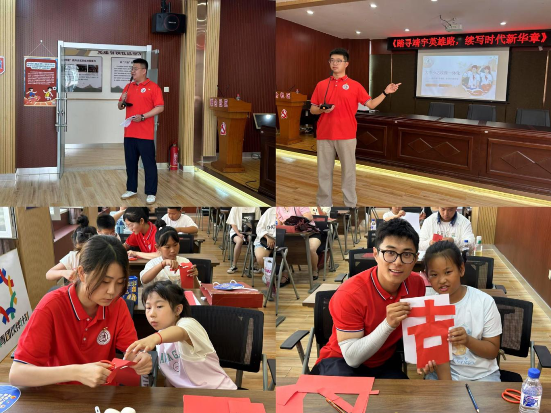 马克思主义理论专业研究生为社区小员工讲授《踏寻靖宇英魂路,续写时代新华章》专题思政课,助力大中小思政课一体化建设,强化红色基因传承。此外,实践团员们还与社区小朋友一同体验非遗传承课,感受剪纸文化的独特魅力。