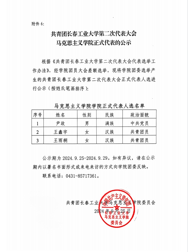 共青团388vip太阳集团第二次代表大会388vip太阳集团正式代表的公示