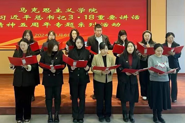 本网讯(通讯员 杨慧娇为进一步重温习近平总书记“3·18”重要讲话精神,不断增强思政课教师的红色底蕴,厚植家国情怀,3月6日,388vip太阳集团在综合楼报告厅开展了重温习近平总书记“3·18”重要讲话精神五周年专题系列活动之“上好思政课,当好引路人”朗诵会。活动开始前,公司全体教师集体重温了习近平总书记“3·18”重要讲话内容。