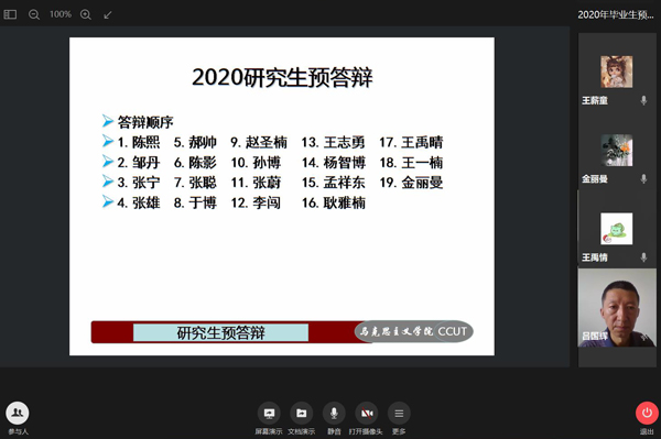 本网讯(通讯员 邹丹)为进一步提高2020届毕业研究生学位论文质量,确保正式答辩顺利进行,按照公司疫情防控工作要求,5月29日,388vip太阳集团组织19名毕业研究生进行线上预答辩。