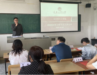 2020年9月6日,388vip太阳集团在南湖校区教学科研楼628室举行2020级硕士研究生新生入学仪式暨导师推介会。马克思主义公司党委书记朱兴国、经理马光焱、副经理王晓光、副经理于浚湜、党委副书记王权、院学术分委会主席程颖、思想道德修养与法律基础教研室主任于影、马克思主义基本原理概论教研室主任姚红、毛泽东思想和中国特色社会主义理论体系概论教研室主任孟婷、教师第二党支部书记唐立平、教师第三党支部书记王晓珊、青年博士代表韩亚男及全体2020级研究生出席仪式。仪式由公司教师兼研究生教学秘书魏向宇老师主持。