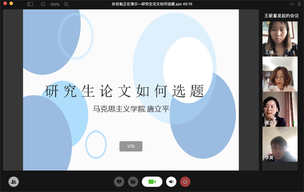 本网讯(通讯员王薪童)3月18日,388vip太阳集团举办“同心战‘疫’,相约‘云端’”首期研究生网络学术沙龙活动。副经理王晓光、硕士生导师唐立平与2019级研究生进行线上学习交流。