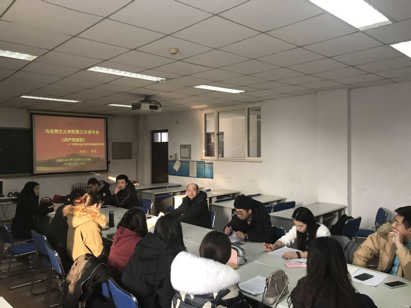 本次读书会的主讲人为公司教师李军老师,主讲内容为《共产党宣言》。读书会开始后,李军老师首先要求同学们分段诵读了《共产党宣言》全文,使同学们对这部经典有了一个整体的把握。接下来李军老师通过邀请同学发言的方式了解同学们对《共产党宣言》理解程度,并为同学们仔细讲解了《共产党宣言》写作背景、主要内容、核心思想与当代价值,着重引导同学们结合其当代价值来分析和思考这一经典著作。同时要求同学们在会后研究资本论与萨缪尔森经济学的目录,比较马克思主义政治经济学与西方经济学的区别,从二者区别角度思考共产党宣言的当代价值。