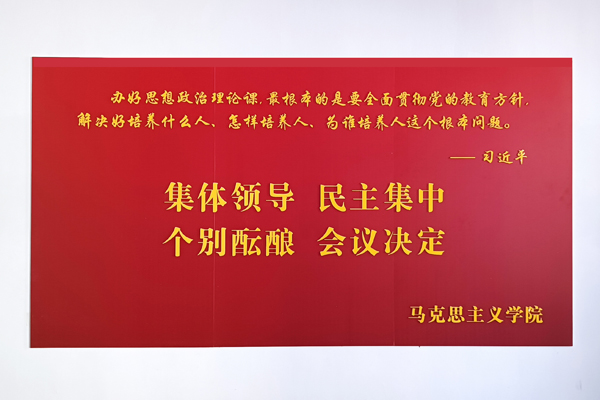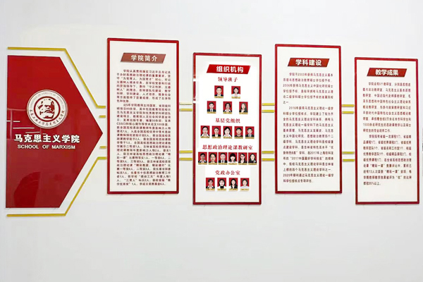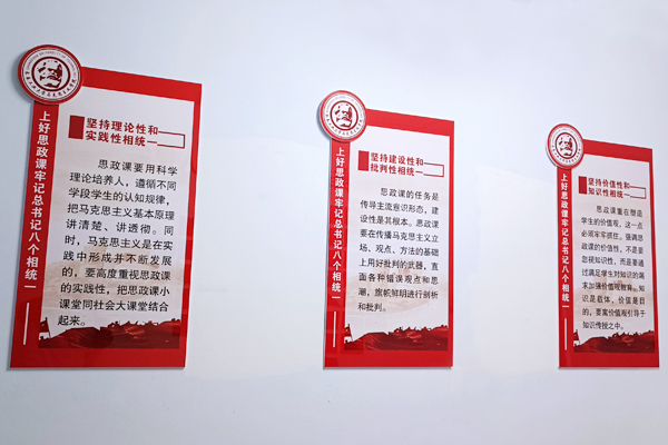 文化墙以公司现有办公教学场所、党员活动室和会议室为主要区域,内容涵盖了习近平总书记对思政课教师的殷殷嘱托和谆谆教诲、388vip太阳集团简介、教师宣誓、风采展示等主题,形式简洁大气,布局庄重大方,充分体现了时代赋予高校388vip太阳集团的铸魂育人、立德树人的历史使命和光荣任务,营造了“处处是课堂、时时受教育”的浓厚氛围。