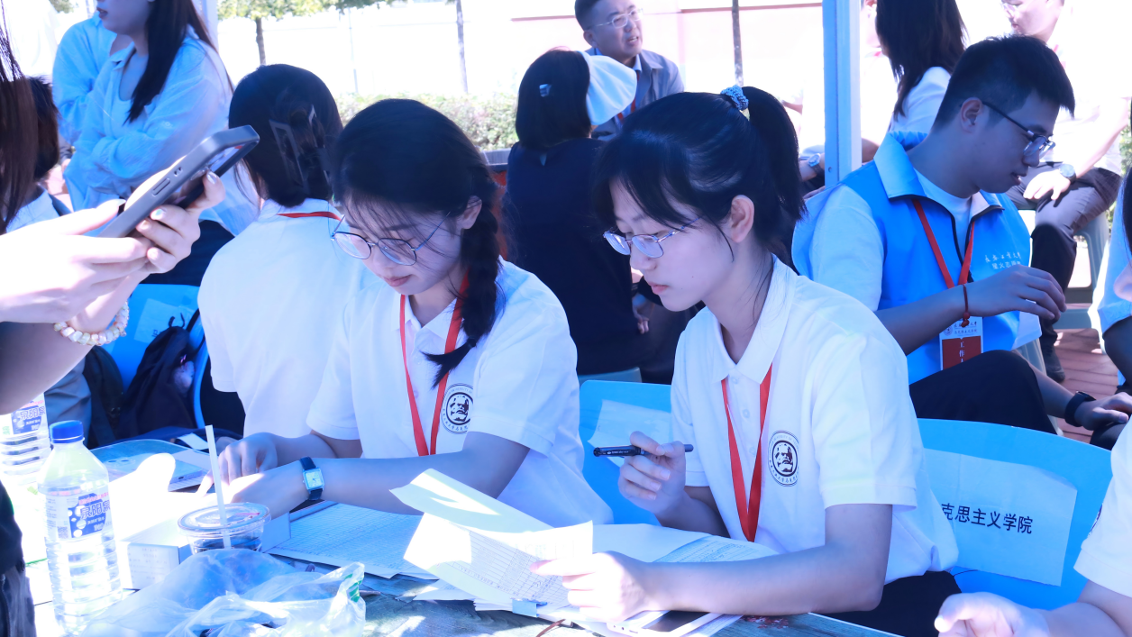 迎新展板前,新同学们纷纷留下了具有纪念意义的入校第一张照片,定格与马院的初见时刻。一张张照片不仅记录下青春洋溢的脸庞,更承载着对研究生生活的美好憧憬。